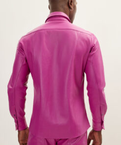 High-Quality Lambskin Leather Pink Shirt/Pant with Functional Flap Chest Pockets and Snap Fasteners