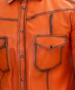 Handmade Men’s Fashion Trucker Olive Western Leather Shirt for Mountain Biker Motorcycle
