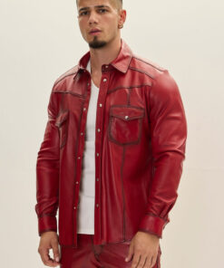 High-Quality Lambskin Red Leather Shirt/Pant with Functional Flap Chest Pockets and unique stitching sprey