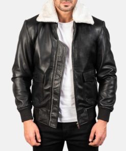 Men’s Real Black Leather Jacket with Removable Hoodie