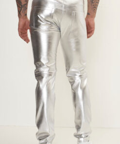 Elegant and Versatile Slim-Cut Grey Leather Pants for Effortless Transition from Casual to Formal