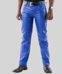 Elegant and Versatile Slim-Cut Navy Leather Pants for Effortless Transition from Casual to Formal