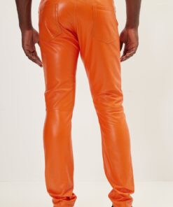 Elegant and Versatile Slim-Cut Orange Leather Pants for Effortless Transition from Casual to Formal