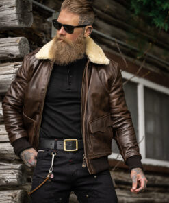 Rugged Timeless Buffalo Leather Bomber A2 Jacket with Fur Collar and Flannel Check Lining”