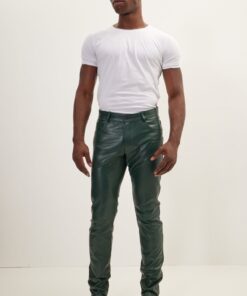 Elegant and Versatile Slim-Cut Olive Green Leather Pants are designed to offer a seamless transition from casual to formal wear. Crafted from premium quality leather, these pants provide a sleek and sophisticated look that is perfect for any occasion. The slim-cut design ensures a flattering fit, while the high-quality stitching guarantees durability and comfort. Whether you’re heading to a business meeting or a night out, these leather pants will keep you looking stylish and confident.