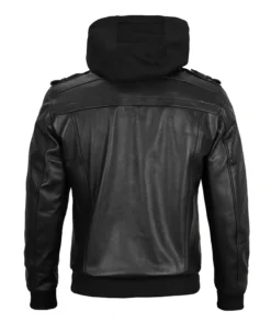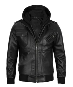 Men’s Real Black Leather Jacket with Removable Hoodie – Stylish & Versatile