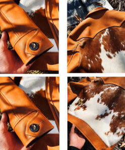 - Material: High-quality cowhide leather with natural cow skin fur lining.