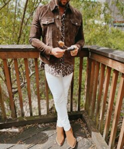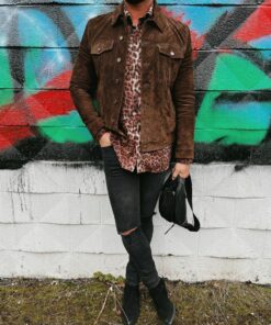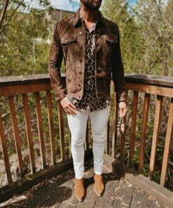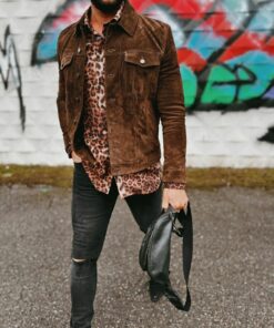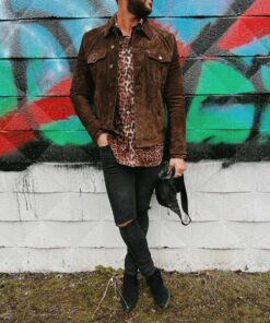 Stylish Men’s Jeans-Style Suede Dark Brown Leather Jacket – Perfect for Casual and model Looks